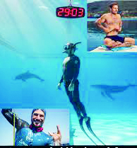 ክሮሺያዊው ቪቶሚር ማሪች ሦስት ሜትር ጥልቀት ባለው ውኃ የተሞላ ገንዳ ውስጥ ሰጥሞ ያለ መተንፈሻ መሣሪያ እገዛ ወደ ውስጥ ስቦ በገባው ኦክስጂን ብቻ 29 ደቂቃ በመቆየት ለክብረወሰን መብቃቱን ኦዲቲ ሴንትራል ድረ ገፅ ከሳምንት በፊት አስነብቧል፡፡