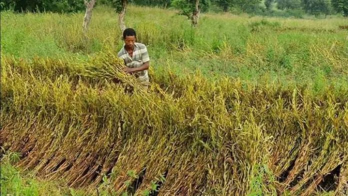 የታጨደው ሰብል በዝናብ እንዳይበላሽም በአግባቡ አናፍሶ እና አድርቆ መከመር አለበት።