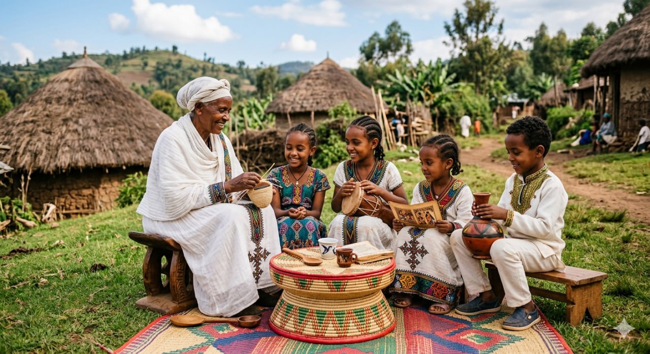 በአንድ ለምለም የኢትዮጵያ መንደር ውስጥ አቤልና ማርታ የሚባሉ ታታሪ ልጆች ነበሩ። አንድ ቀን ጠዋት ኩታቸውን ተከናንበው ወደ አያታቸው ሲሄዱ መንገዱ ላይ አንድ ሽማግሌ ከባድ የሳር ጭነት ተሸክመው አዩ። ልጆቹም ወዲያው ሮጠው በመሄድ “አባባ ይረፉ፤ እኛ እንርዳዎ” ብለው ሸክሙን ተቀበሏቸው። ሽማግሌውም በልጆቹ ትህትና ተደስተው “እጅና እግር ይውጣላችሁ፣ የሀገራችሁን ባሕል ጠባቂዎች ያድርጋችሁ” ብለው መረቋቸው። አያታቸው ቤት ሲደርሱም አያቴ በደስታ ተቀብለው ከእንጀራው “ጉርሻ” አጎረሷቸውና ስለ ባህል ውበት እንዲህ ብለው ነገሯቸው።