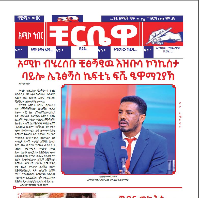 ቤዴራስኩ እትሜትካ ቺርቤዋ ናሲ 15 ጌርክ 2017 ምሬት አሜታ /አማራ ሚዲያ ኮርፖሬሽን/ By azemera yenew August 25, 2025 0 59 downelode Previous articleአሚኮስታ ማቤራዊዉ ዜርፍNext articleአሚኮ ብሄራዊ ትክም ማንዲስታታ እንፃኽስታው ሚዲያኽ አብን ኩስጝጚ ቹዋ ሜፍቲያኽ ትክላይ ሚንስትር አብይ አህመድ June 20, 2024 “ ምንግስት እዝቡሳ ክልኾ እምቢታ ቹኒታማ ታምባውላ ይጉጝስ ሚንች ጉዳት ታምባማጊኽ ” አካኮ አርጃ ኬቤሊው ዝኩዋንትካ May 17, 2024