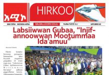 MAXXANSAWWAN DURAANII Maxxansa Gaazexaa HIrkoo: Muddee 15/2018 By ahmed December 25, 2025 0 50 Download Previous articleBiyya Sabdaneetiifi Af-Daneetti Qabnuuf Bulchiinsa Feederaalizimii Sirnaan Ijaaru BarbaadaNext articleBulchiinsi Salammii Oromoo Galii Birrii Biiliyoona 1.5 Ol Walitti Qabuuf Hojjechaa Jiraachuu Beeksise Oduu Ayyaanni Dhaloota Iyyasuus Kiristoos Magaala Laalibalaatti Dadammaqina Turizimii Uumeera January 9, 2026 Humnoonni Filannoo Nagaa Fudhatan Wabii Jireenyaa Amansiisaa Akka Qabataaniif Hojjetamaa Jira January 9, 2026 Marii Taasifamaa Jiruun Uummanni Nageenya Naannawa Isaa Akka Eggatu Dubbatan December 26, 2025 Bulchiinsi Salammii Oromoo Galii Birrii Biiliyoona 1.5 Ol Walitti Qabuuf Hojjechaa Jiraachuu Beeksise December 26, 2025 Garee Dhaabbata Faannoo Uummata Amaaraa Waliigaltee Mootummaa Waliin Irra Gahe Ilaalchisee Ibsa Kenne December 9, 2025