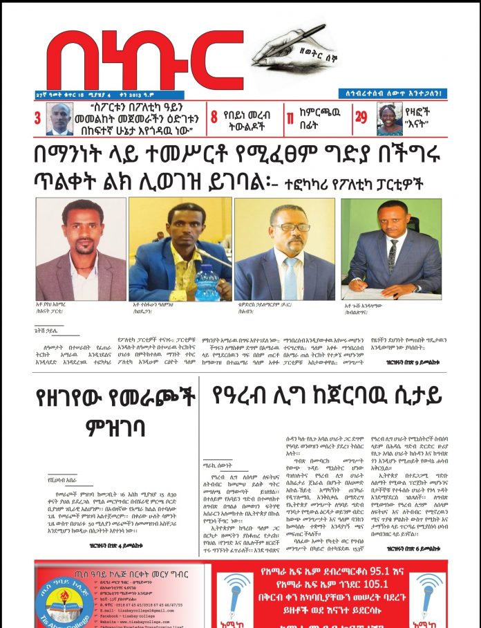 በኩር ጋዜጣ ሚያዝያ 04/2013 ዓ/ም ዕትም