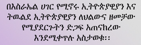 በእስራኤል ሀገር የሚኖሩ ኢትዮጵያዊያን እና ትዉልደ ኢትዮጵያዊያን ለህልውና ዘመቻው የሚያደርጉትን ድጋፍ አጠናክረው እንደሚቀጥሉ አስታወቁ፡፡