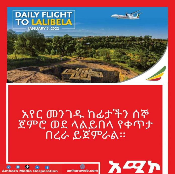 ታኅሣሥ 21/2014 ዓ.ም (አሚኮ) የኢትዮጵያ አየር መንገድ ከፊታችን ሰኞ ጀምሮ ወደ ላልይበላ የቀጥታ በረራ እንደሚጀምር አስታውቋል።