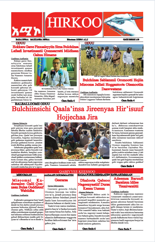 Hirkoo Maxxansa Gaazexaa Hirkoo: Bitootessa 15/2016 March 25, 2024 70 Maxxansa Gaazexaa Hirkoo: Bitootessa 15/2016 Download ተዛማች ዜናዎች:የፖሊዮ በሽታን እንዴት መከላከል ይቻላል?