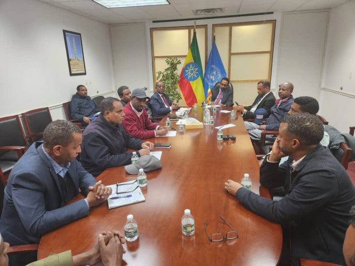 ባሕር ዳር: ሚያዝያ 14/2016 ዓ.ም (አሚኮ) በአማራ ክልል ብልጽግና ፓርቲ ቅርንጫፍ ጽሕፈት ቤት ኃላፊ ይርጋ ሲሳይ የሚመራው የልዑክ ቡድን ኒውዮርክ ከተማ የሥራ ጉብኝት ቀጥሎ በተባበሩት መንግሥታት ድርጅት የኢትዮጵያ ሚሲዮን ጽሕፈት ቤት አምባሳደሮች፣ ዲፕሎማቶች፣ ኢትዮጵታዊያን እና ትውልደ ኢትዮጵያዊያን ተወካዮች ጋር በሀገራዊና ክልላዊ ወቅታዊ ጉዳዮች ዙሪያ ውይይት አድርጓል።