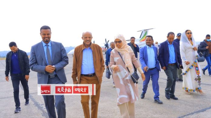 የጎንደር ማዕከላዊ ጎንደር ዞን ዋና አሥተዳዳሪ ወርቁ ኃይለማርያም፣ የጎንደር ከተማ አሥተዳደር ተቀዳሚ ምክትል ከንቲባ ባዩህ አቡሀይ እንዲሁም ሌሎች የከተማ አሥተዳደሩ የሥራ ኀላፊዎች በጎንደር አጼ ቴዎድሮስ አየር ማረፊያ ተገኝተው አቀባበል አድርገውላቸዋል።