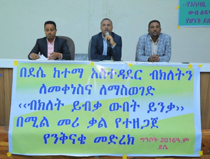 በመድረኩ መልዕክት ያስተላለፉት የደሴ ከተማ አሥተዳደር ተቀዳሚ ምክትል ከንቲባ ሳሙኤል ሞላልኝ “ጽዳት የዘመናዊ አስተሳሰብ ውጤት ነው” ብለዋል። “በከፍተኛ ጥግግት ውስጥ ኑሮውን ለሚገፋው የከተማችን ነዋሪ ጽዱና ውብ፤ ዘመናዊ የፍሳሽና የደረቅ ቆሻሻ አወጋገድ ሥርዓትን መዘርጋት ለነገ የማይባል ሥራ ነው” ብለዋል፡፡