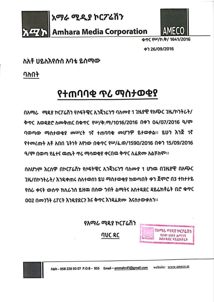 የተጠባባቂ ጥሪ ማስታወቂያ !