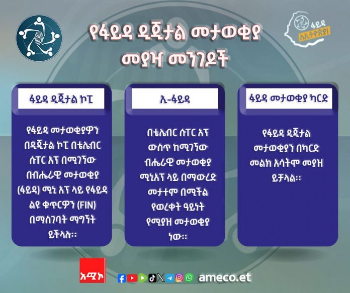 👉ፋይዳ መታወቂያ ካርድ ፡- የፋይዳ ዲጂታል መታወቂያን በካርድ መልክ አሳትሞ መያዝ ይቻላል፡፡