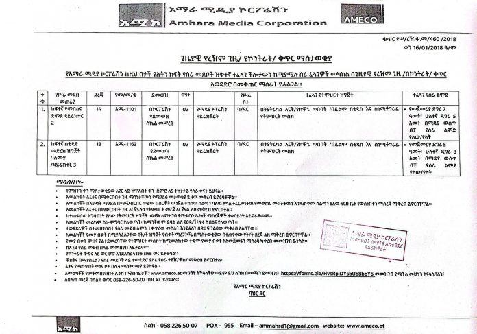 ክፍት የስራ ቦታ ጊዜያዊ የረዥም ጊዜ (የኮንትራት) ቅጥር ማስታወቂያ September 26, 2025 195 በዚህ ሊንክ ገብተው ይመዝገቡ https://forms.gle/HvsRpiDYsbU68bqY6 ተዛማች ዜናዎች:ለሰላም እጦት ምክንያት የኾኑ የመልካም አሥተዳደር ችግሮችን በመፍታት ዕቅዶችን…