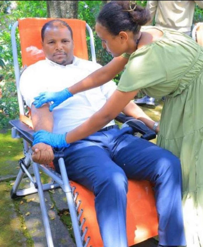የጠቅላይ ፍርድ ቤቱ ፕሬዝዳንት ዓለምአንተ አግደው ከኢትዮጵያ ካፒታል ገበያ ባለሥልጣን ዋና ዳይሬክተር ሃና ተህልቁ፣ የሰነደ መዋለ ንዋይ ዋና ሥራ አሥፈጻሚ ጥላሁን እስማኤል (ዶ.ር) እና ከሁሉቱም ተቋማት ከፍተኛ መሪዎች እንዲሁም ባለሙያዎች ጋር በመኾን የደም ልገሳ መርሐ ግብሩን አስጀምረዋል።