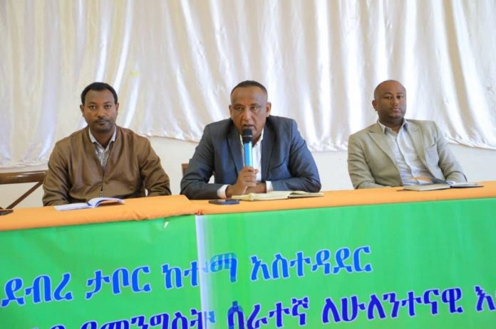 በመድረኩ የተገኙት የደብረ ታቦር ከተማ አሥተዳደር ከንቲባ ዴሴ መኮነን ሕዝቡ የሚያነሳቸውን የልማት እና የመልካም አሥተዳደር ጥያቄዎችን በተገቢው መንገድ ለመመለስ እና የመንግሥት ሠራተኛው የሰላም ዘብነቱን የበለጠ አጠናክሮ እንዲቀጥል ለማስቻል ዓላማ ያደረገ የውይይት መድረክ መኾኑን አስገንዝበዋል።