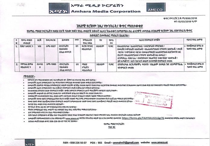 ክፍት የስራ ቦታ ጊዜያዊ የረዥም ጊዜ /የኮንትራት/ ቅጥር ማስታወቂያ November 24, 2025 429 በቀጣዩ ሊንክ መመዝገብ ይችላሉ https://forms.gle/FAJtY84UiS1L6gr76 ተዛማች ዜናዎች:በኩር ጋዜጣ ኀዳር 15/2018 ዓ.ም