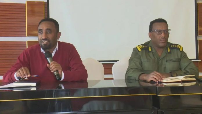 ቅርንጫፍ ጽሕፈት ቤት ኀላፊ ይርጋ ሲሳይ፣ በሀገር መከላከያ ሠራዊት ከፍተኛ አመራር የኾኑት ሌተናል ጀኔራል አሰፋ ቸኮል እናሌሎችም የክልል፣ የዞን እና የከተማ አሥተዳደር የሥራ ኀላፊዎች ተገኝተዋል።