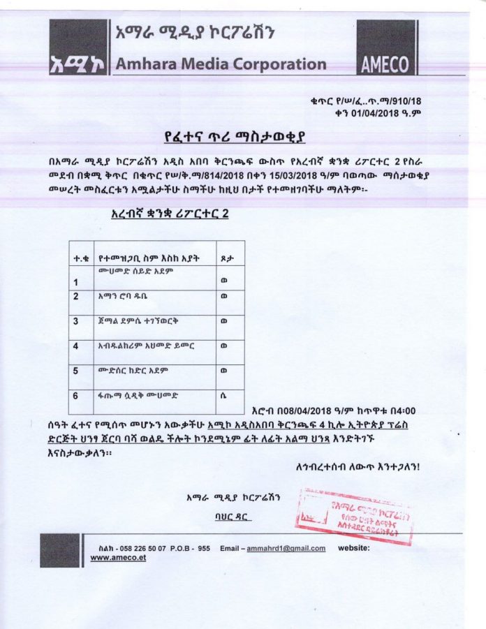 የፈተና ጥሪ ማስታወቂያ