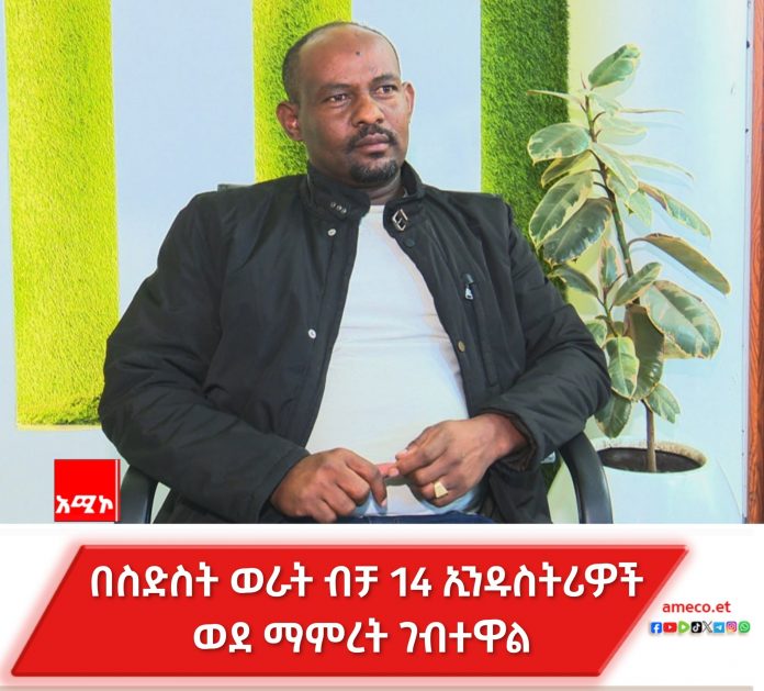 በተያዘው በጀት ዓመት 18 ኢንዱስትሪዎችን ወደ ምርት ለማስገባት ታቅዶ በስድስት ወራቱ ብቻ 14 ኢንዱስትሪዎች ወደ ማምረት ገብተዋል ነዉ ያሉት።