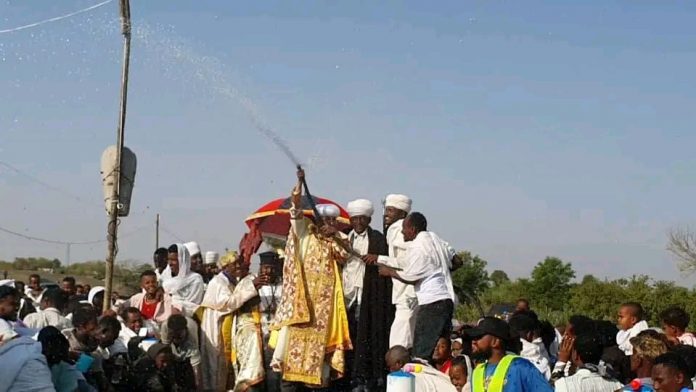 በዓሉ ማለዳ ላይ በሃይማኖት ዓባቶች ቡራኬ ከተሠጠ በኋላ አሁን ደግሞ የጸበል ርጭት ሥነ ሥርዓት እየተከናወነ ነው የሚገኘው።