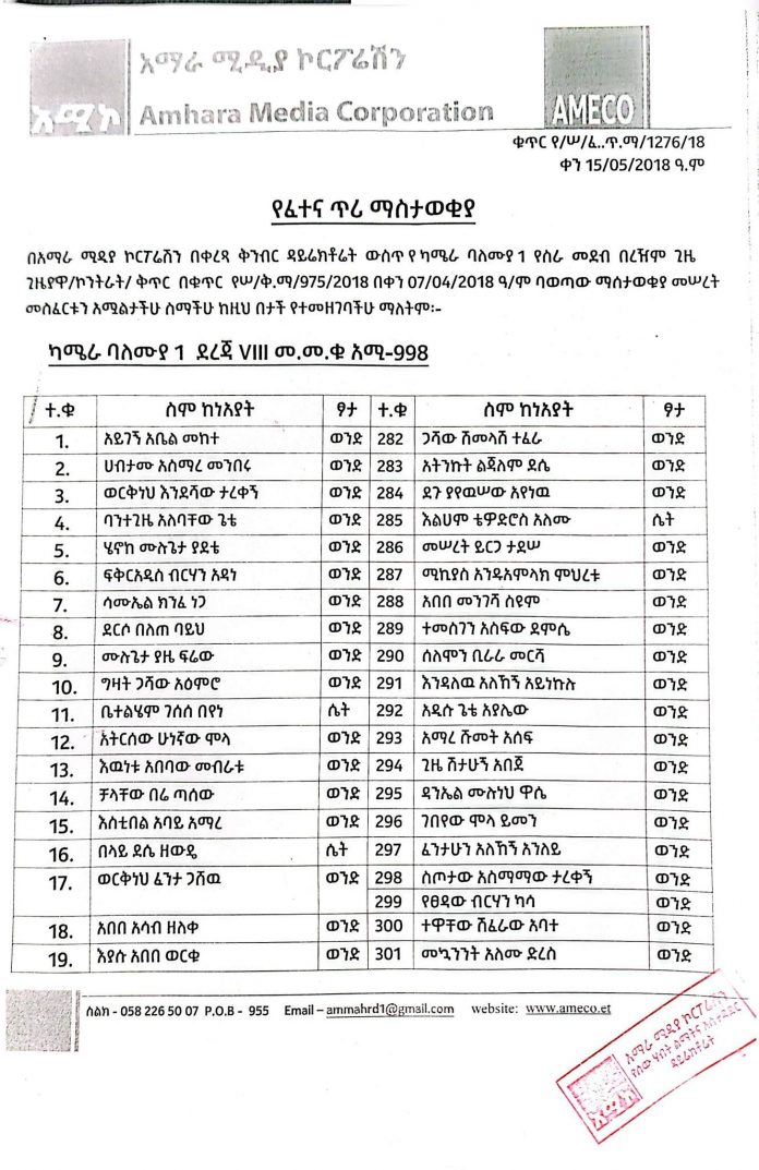 ክፍት የስራ ቦታ የፈተና ጥሪ ማስታወቂያ January 23, 2026 323 የፈተና ጥሪ ማስታወቂያ download ተዛማች ዜናዎች:የአንድ ተማሪ የፈተና ውጤት የተማሪው፣ የወላጅ እና የመምህራን የጋራ ጥረት ነው።