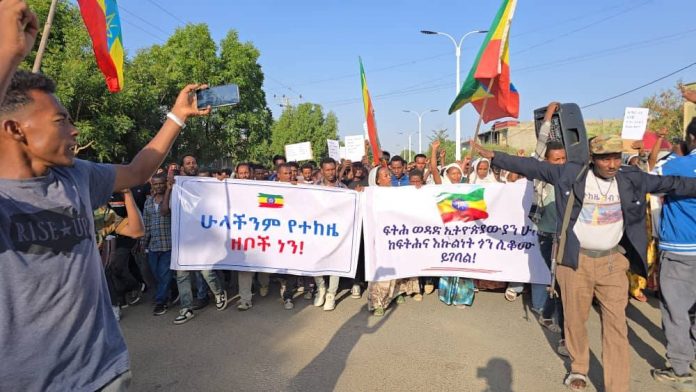 “ከትግራይ ሕዝብ ጋር ትናንትም ዛሬም ነገም ግጭት የለንም” የሚል መልዕክት የያዙት ሰልፈኞቹ የጥፋት ኃይሉ እኩይ ሴራ ግን በኢትዮጵያ ፍርስራሽ ላይ የትግራይ ሪፐብሊክን መገንባት ነው ብለዋል።