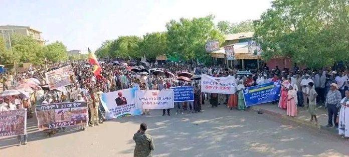 ባሕር ዳር: ጥር 25/2018 ዓ.ም (አሚኮ)በአማራ ክልል ወልቃይት ጠገዴ ሰቲት ሁመራ ዞን በማይካድራ ከተማ አሥተዳደር ሕወሃት የሚያደርገውን ትንኮሳ የሚቃወም ሕዝባዊ ሰላማዊ ሰልፍ እየተካሄደ ነው።