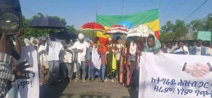 ዜናአማራ በቃብትያ ሁመራ ወረዳ ሕዝባዊ ሰላማዊ ሰልፍ እየተካሄደ ነው። February 2, 2026 29 ባሕር ዳር: ጥር 25/2018 ዓ.ም (አሚኮ) በአማራ ክልል ወልቃይት ጠገዴ ሰቲት ሁመራ ዞን በቃብትያ ሁመራ ወረዳ ሕወሃት የሚያደርገውን ትንኮሳ የሚቃወም ሕዝባዊ ሰላማዊ ሰልፍ እየተካሄደ ነው። ሰልፈኞቹ ሕወሃት በአማራ ክልል እያደረገ ያለውን ሕገወጥ ወረራ ተቃውመዋል። እምቢ ለዳግም ባርነት አንገዛምም ብለዋል። የአሚኮ ዲጂታል ሚዲያ ቤተሰብ ይሁኑ! https://linktr.ee/AmharaMediaCorporation ለኅብረተሰብ ለውጥ እንተጋለን! ተዛማች ዜናዎች:"ላመኑበት ዕውነት ዋጋ የከፈሉልን ሁሉ ማክበር ባሕላዊ ብቻ ሳይኾን ሃይማኖታዊ…