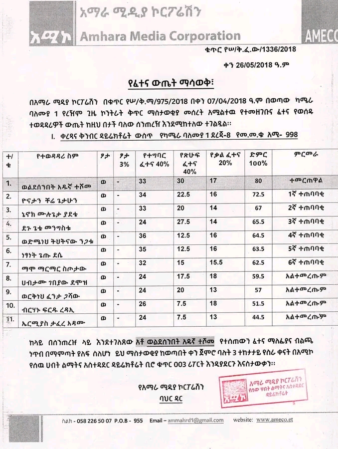 ክፍት የስራ ቦታ የፈተና ውጤት ማሳወቅ February 3, 2026 9 ተዛማች ዜናዎች:"አየር ኃይላችን አየራችን ብቻ ሳይኾን ፍላጎታችንንም የሚጠብቅ ይኾናል" ጠቅላይ…