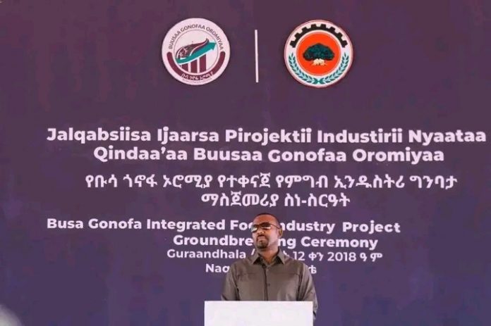 ጠቅላይ ሚኒስትሩ በማኀበራዊ ትስስር ገጻቸው ባሰፈሩት መልዕክት ዛሬ ያስጀመርነው የቡሳ ጎኖፋ ኦሮሚያ የተቀናጀ የምግብ ኢንዱስትሪ ግንባታ የበቆሎ፣ ማሽላ ዱቄት እና 14 ተጓዳኝ የበቆሎ ውጤት ምርቶችን ለማምረት የታቀደ ነው ብለዋል።