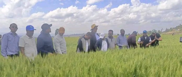 አዲስ አበባ: መጋቢት 25/2018 ዓ.ም (አሚኮ) የፌዴራል ከፍተኛ የሥራ ኀላፊዎች እና የክልል መሪዎች በኦሮሚያ ክልል ምሥራቅ ሸዋ ዞን አዳአ ወረዳ በበጋ መስኖ የለማ የስንዴ ማሳን እየጎበኙ ነው።