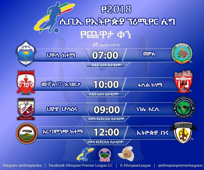 ባሕር ዳር: ኅዳር 28/2018 ዓ.ም (አሚኮ) የኢትዮጵያ ፕሪምየር ሊግ ዘጠነኛ ሳምንት ዛሬ በሚካሄዱ አራት ጨዋታዎች ይጠናቀቃል።