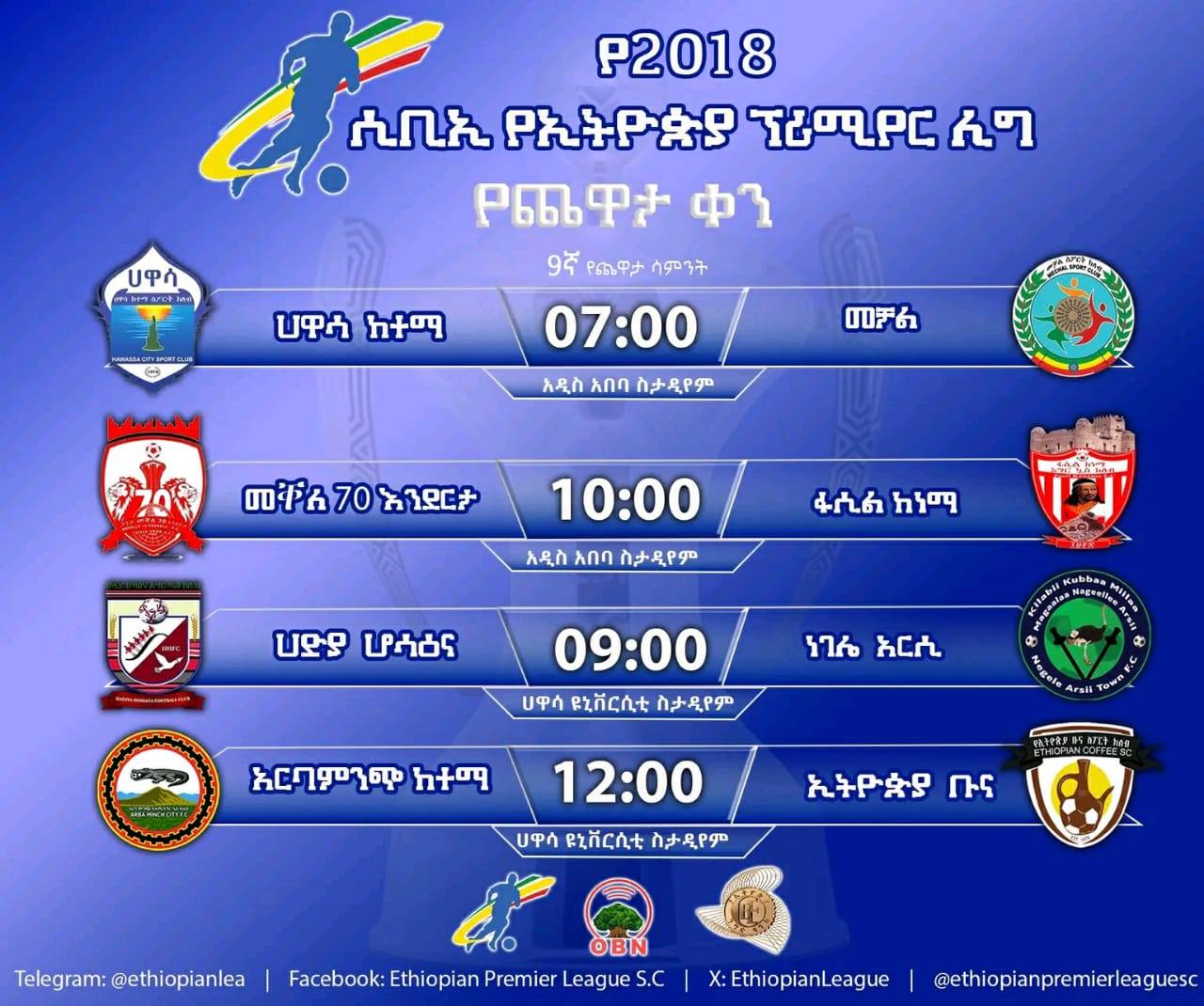 በሊጉ ሌሎች ጨዋታዎችም ሲካሄዱ ሀዋሳ ከተማ ከመቻል በአዲስ አበባ ስታዲየም 7፡00 ላይ ሲደረግ ሀድያ ሆሳዕና ከነገሌ አርሲ በሀዋሳ ስታዲየም 9፡00 ላይ አርባምንጭ ከተማ ደግሞ ከኢትዮጵያ ቡና 12፡00 ሰዓት ሀዋሳ ላይ ጨዋታቸውን ያካሂዳሉ።