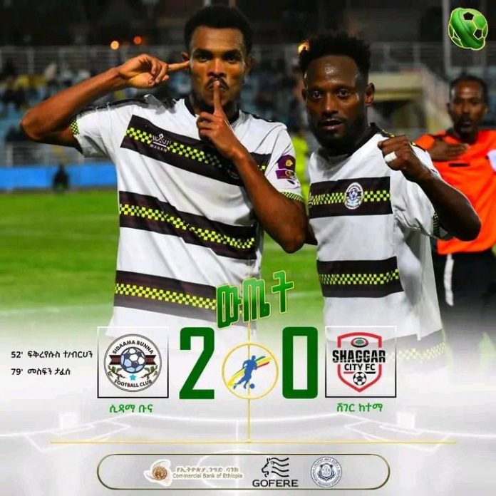 ምሽት 12:00 በተጀመረው የሲዳማ ቡና እና የሸገር ከተማ ጨዋታ በሲዳማ ቡና 2ለ0 አሸናፊነት ተጠናቋል።