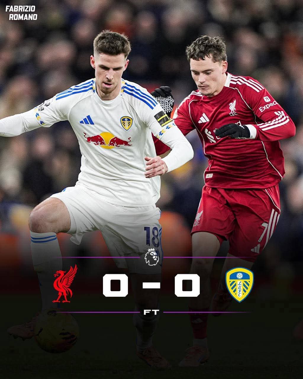ባሕር ዳር፡ ታኅሣሥ 23/2018 ዓ.ም (አሚኮ) በ19ኛ ሳምንት የእንግሊዝ ፕሪምየር ሊግ ሊቨርፑል ከሊድስ ዩናይትድ ያገናኘው ጨዋታ ያለ ግብ ተጠናቅቋል።