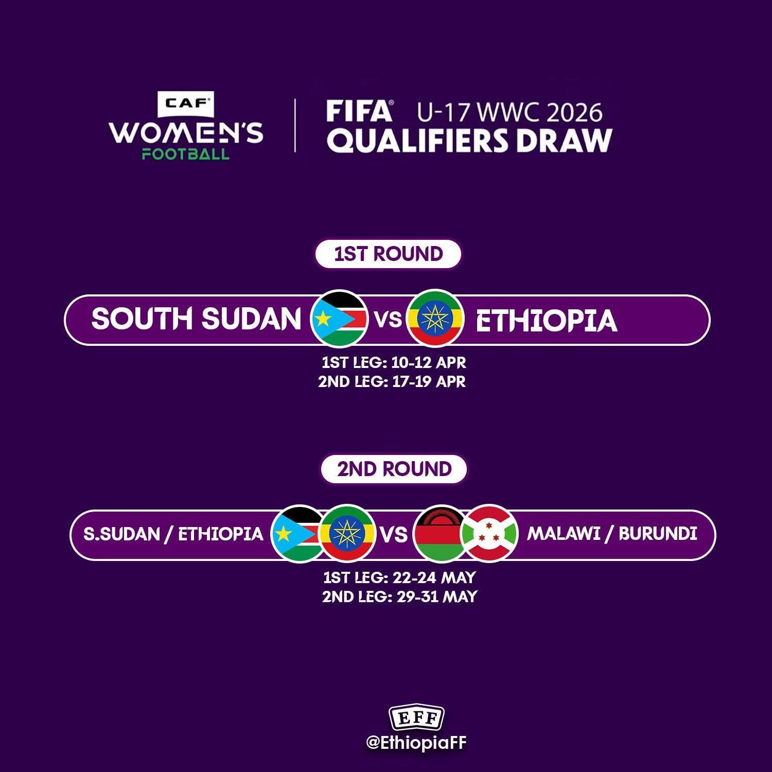 ከኢትዮጵያ እግርኳስ ፌዴሬሽን የተገኘው መረጃ እንደሚያመላክተው ኢትዮጵያ የመጀመርያውን ዙር ካለፈች በሁለተኛ ዙር የማላዊ እና ቡሩንዲን አሸናፊ ትገጥማለች።