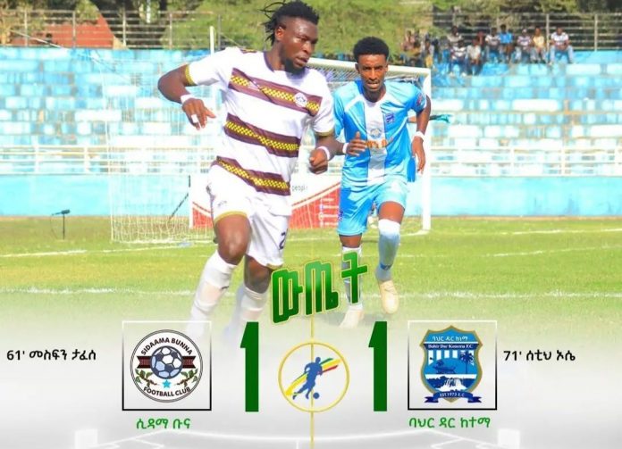 ሀገር ውስጥ ስፖርትኢትዮጵያእግር ኳስዜና ባሕር ዳር ከተማ አቻ ተለያየ። By kaleab Wasie - February 1, 2026 0 21 FacebookTwitterPinterestWhatsApp ባሕር ዳር፡ ጥር 23/2018 ዓ.ም (አሚኮ) በኢትዮጵያ ፕሪፕየር ሊግ ባሕር ዳር ከተማ እና ሲዳማ ቡና ቀን 10:00 ያደረጉትን ጨዋታ በአንድ አቻ ውጤት አጠናቅቀዋል። ለሲዳማ ቡና በ61 ኛው ደቂቃ ላይ መስፍን ታፈሰ አስቆጥሯል። ለባሕር ዳር ከተማ ደግሞ ሰቲህ ኦሴ በ71 ደቂቃ የአቻ ነቷን ግብ አስቆጥሯል። በሙሉጌታ ሙጨ የአሚኮ ዲጂታል ሚዲያ ቤተሰብ ይሁኑ! https://linktr.ee/AmharaMediaCorporation ለኅብረተሰብ ለውጥ እንተጋለን!