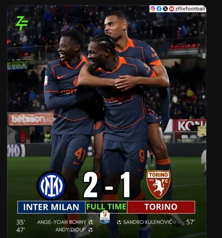 ኢንተር ሚላን ቶሪኖን 2ለ1 በማሸነፍ ነው ለግማሽ ፍፃሜው ማለፉን ያረጋገጠው።