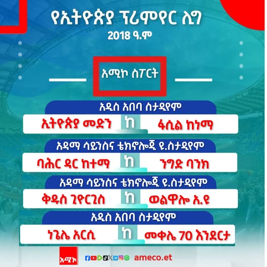 በአዳማ ሳይንስና ቴክኖሎጂ ስታዲየም ደግሞ ባሕር ዳር ከተማ ከኢትዮጵያ ንግድ ባንክ ቀን 9:00 ጨዋታቸውን ያደርጋሉ።