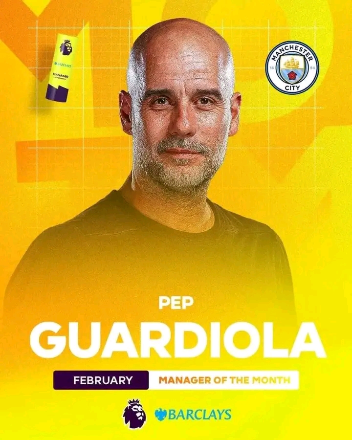 ባሕር ዳር፡ መጋቢት 04/2018 ዓ.ም(አሚኮ) የማንቸስተር ሲቲው አሠልጣኝ ፔፕ ጋርዲዮላ የእንግሊዝ ፕሪምዬር ሊግ የየካቲት ወር ምርጥ አሠልጣኝ ተብለው ተመርጠዋል።