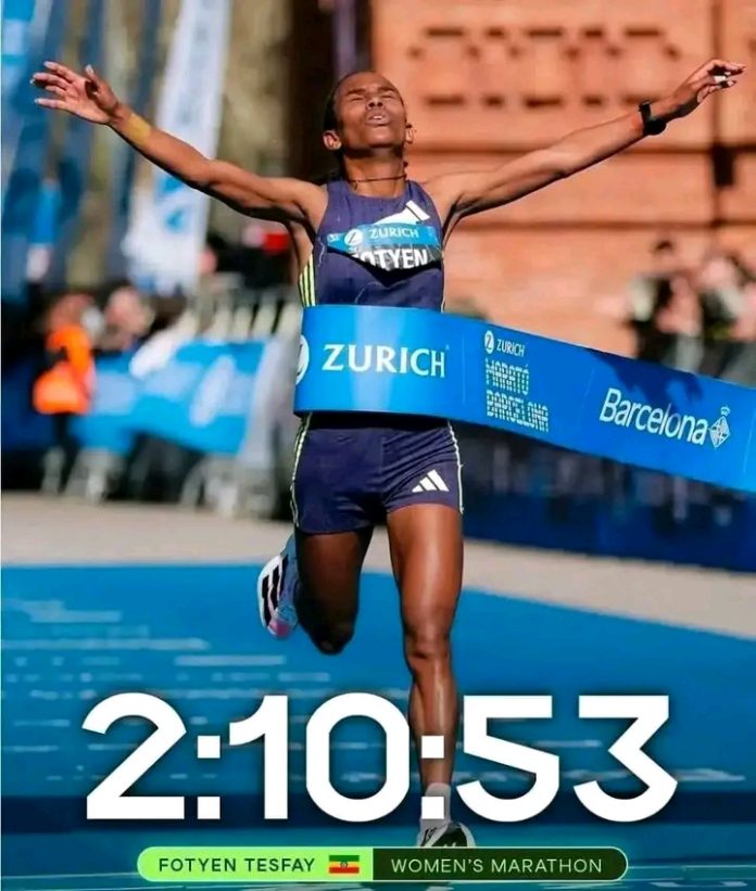 ባሕር ዳር: መጋቢት 06/2018 ዓ.ም (አሚኮ)በዓለም አትሌቲክስ የነሐስ ደረጃ በተሰጠው የባርሴሎና ማራቶን አትሌት ፎቴን ተስፋይ በመጀመሪያ የማራቶን ውድድሯ በታሪክ ሁለተኛውን የዓለም ፈጣን ሰአት በማስመዝገብ አሸንፋለች።